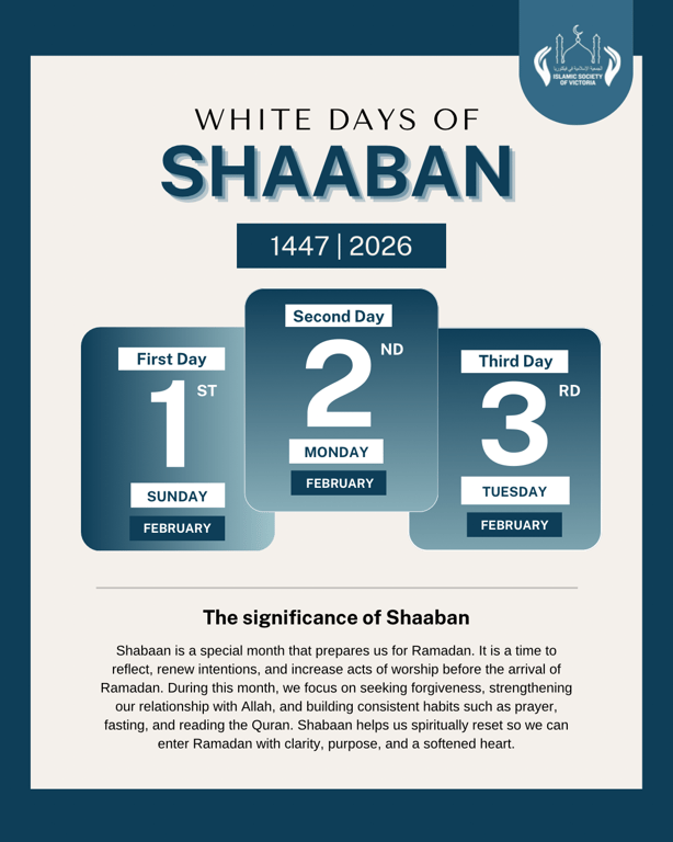 The White Days are a Sunnah practice and a beautiful opportunity to seek forgiveness, renew intentions, and strengthen our connection with Allah before Ramadan begins.
