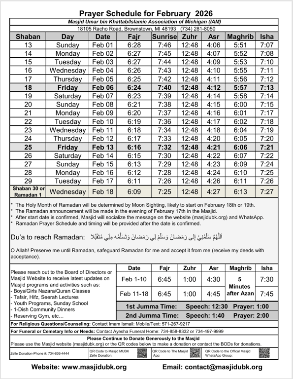 š¢ February 2026 Prayer Times are now available! š