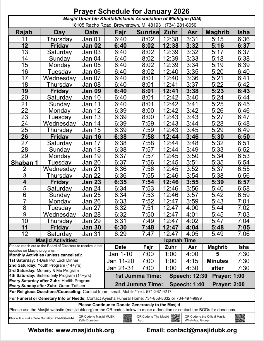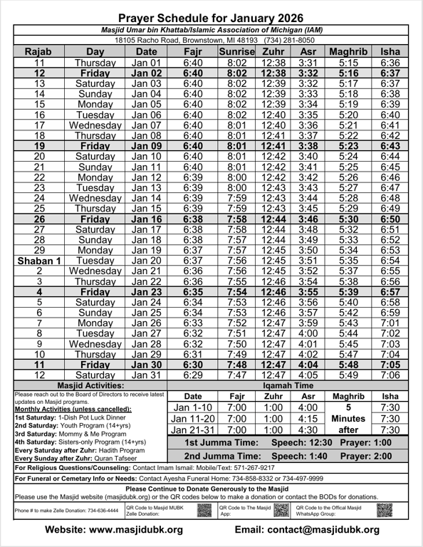 š¢ January 2026 Prayer Times are now available! š