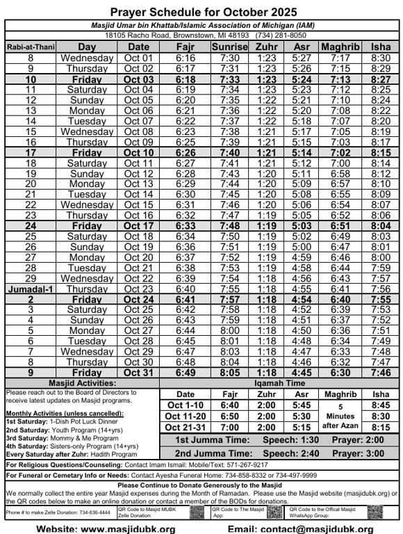 š± Prayer times are available on the MUBK app - just click on "Adhan Timetable"!