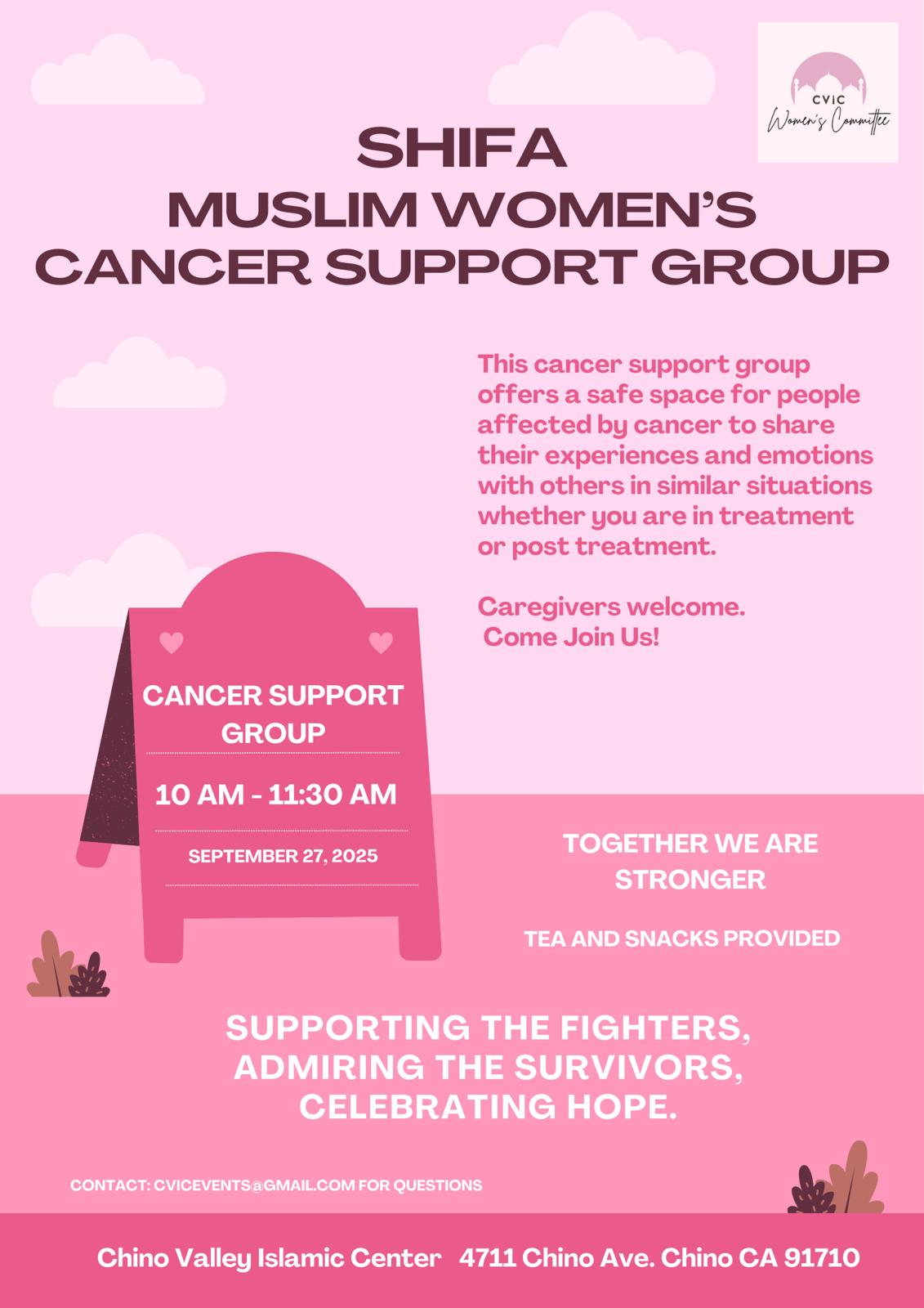 This Women’s Cancer Support Group offers a compassionate and empowering space where individuals can get together to share their experiences, seek comfort and find strength. In this supportive community, participants find solace in knowing that they are not alone in their journey. This group fosters open dialogue, emotional support and practical advice while also organizing educational workshops and wellness activities tailored to everyone’s needs. Through shared stories and collective encouragement, women gain a renewed sense of hope and resilience, helping each other navigate the challenges of cancer with courage and solidarity. Meetings are the 4th Saturday of the month unless otherwise stated.