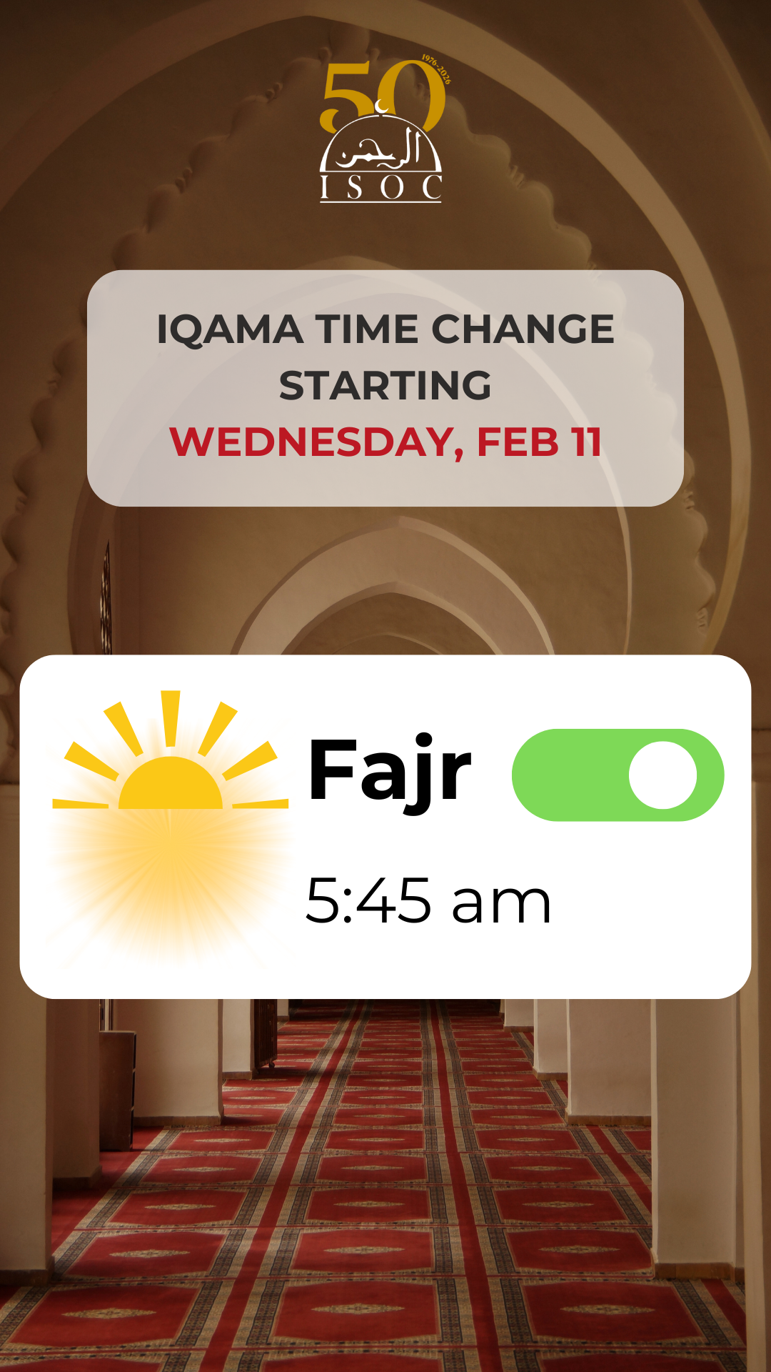 Due to the cleaning of the downstairs carpet, the main prayer area is temporarily unavailable today. All prayers will be conducted in the upstairs hall ⬆️.