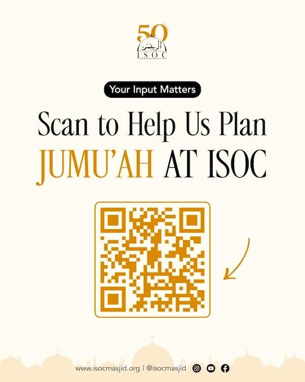 ISOC is planning to introduce two Jumu'ah prayers. To support effective planning and coordination, please take a moment to answer the following two questions in the survey link.