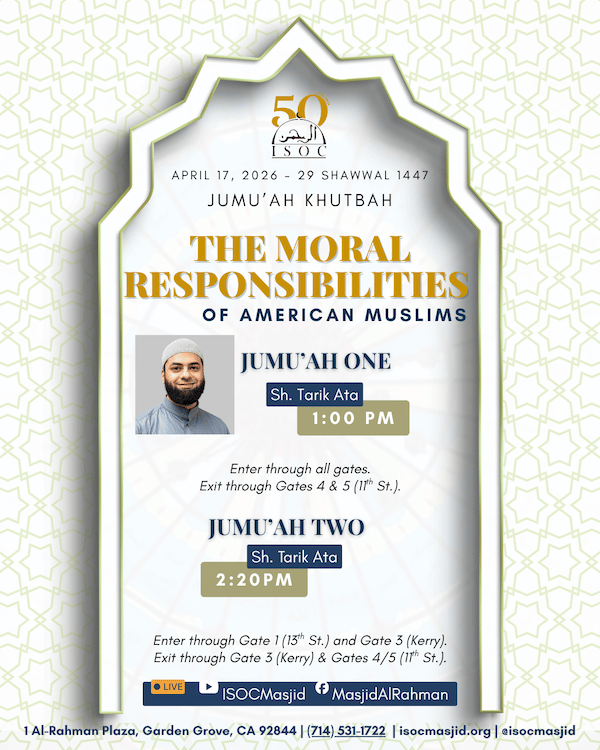 2nd Jumu'ah: "The Moral Responsibilities of American Muslims" by Sh. Tarik Ata | 2:20pmโ3:05pm