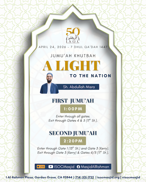 Join us this Friday, April 24th after the 1st Jumuโah for a special opportunity to stop by and say salaam to Garden Grove Chief of Police, Amir El-Farra.