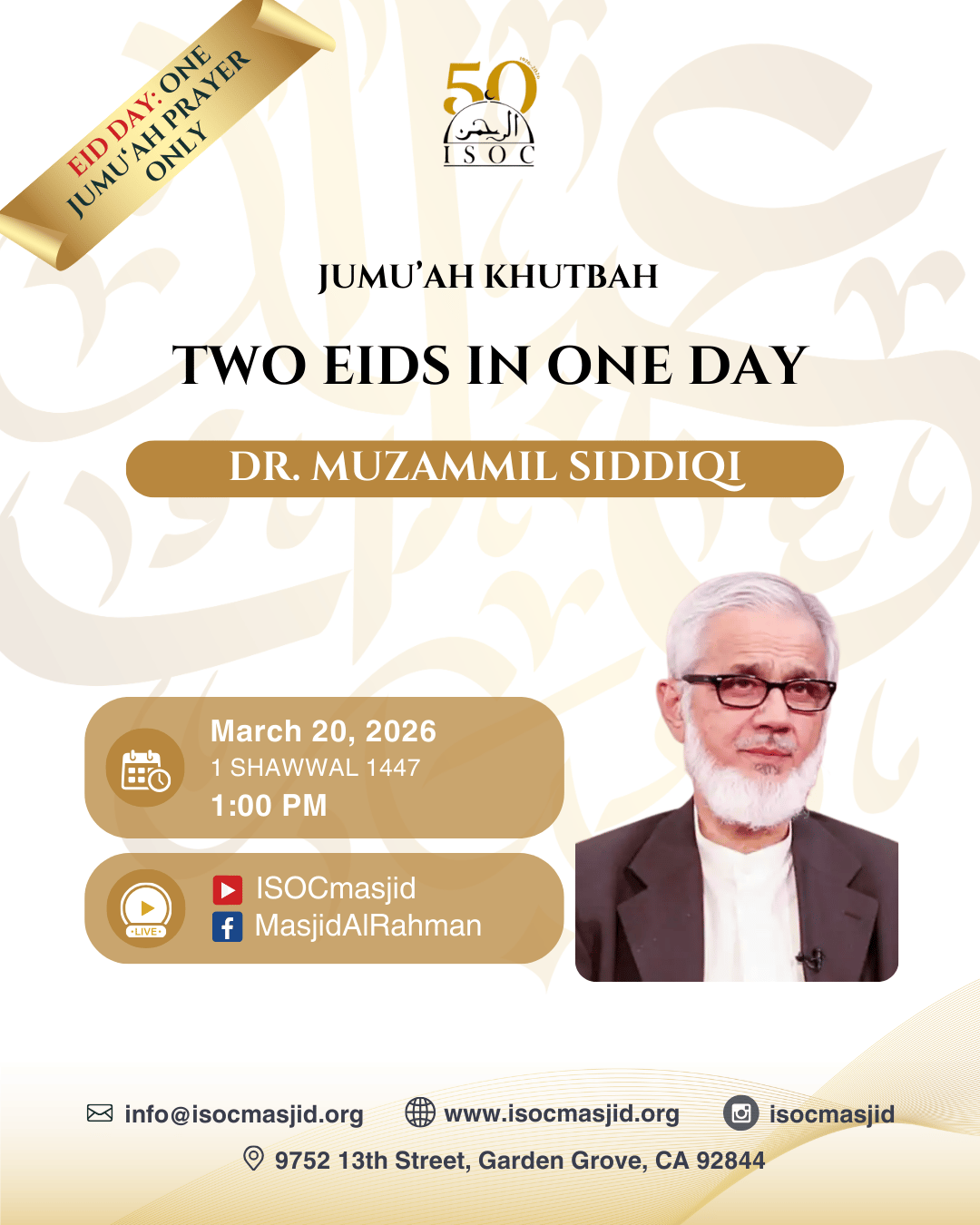 Jumu'ah Khutbah: "Two Eids in One Day!" by Dr. Muzammil Siddiqi | 1:00pm–1:45pm