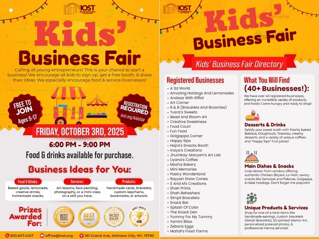 #IOST #KidsBusinessFair #Tonight #SupportSmallBusiness #Binghamton #MasjidLife #Entrepreneurship