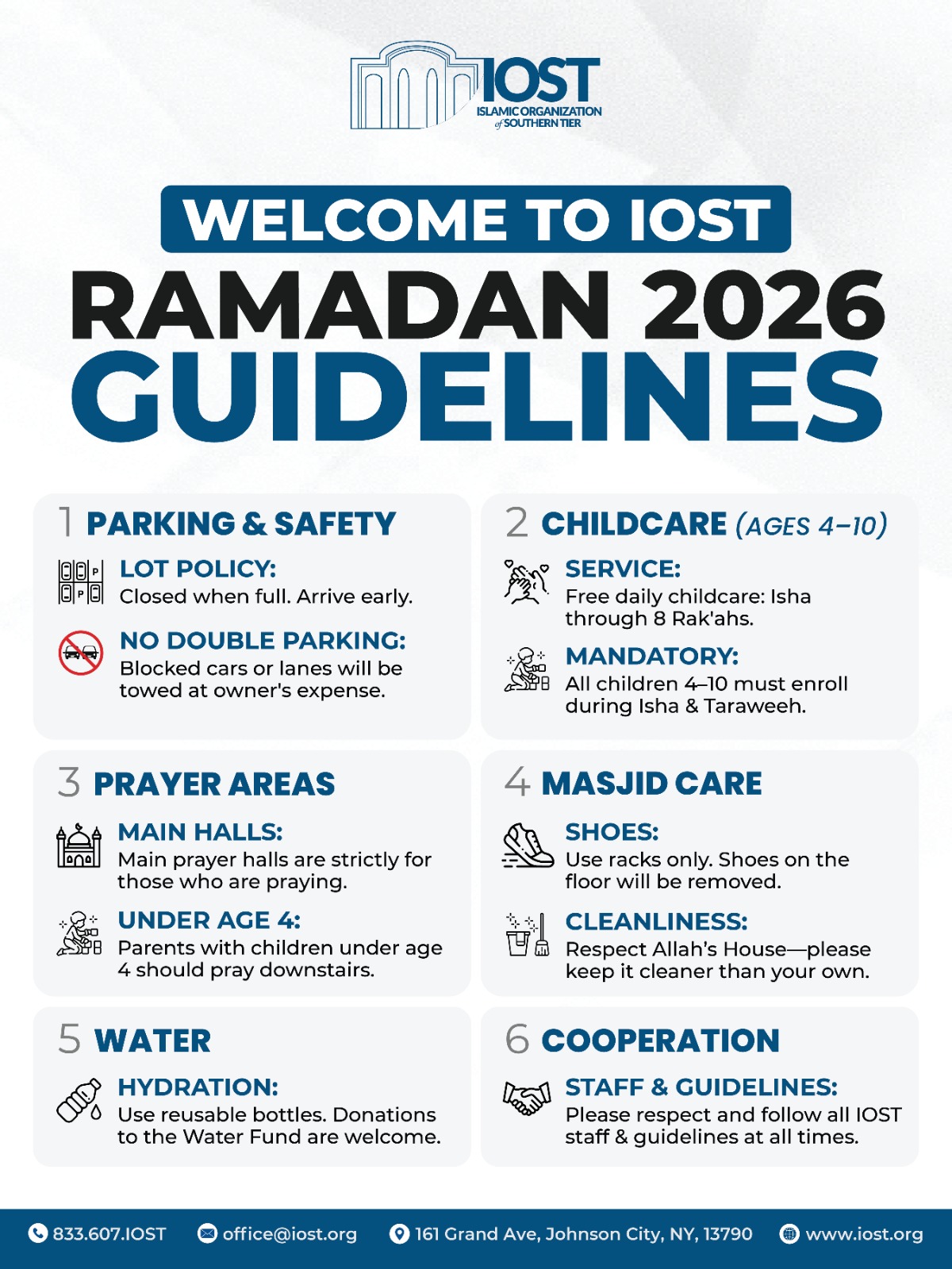 ๐ The Ramadan Booklet: www.iost.org/ramadan-booklet (Program details, services, important timings & dates, and event guides)