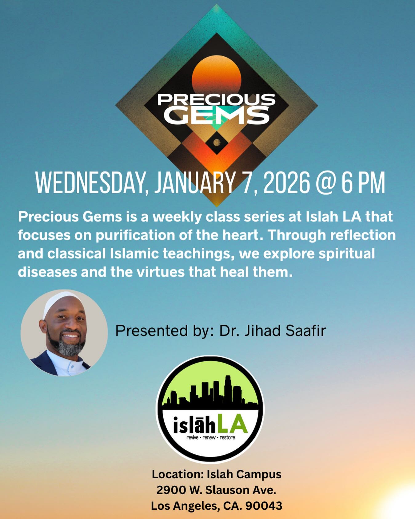 The Precious Gems class will be held at 6:00 PM tomorrow, Wednesday, April 1st