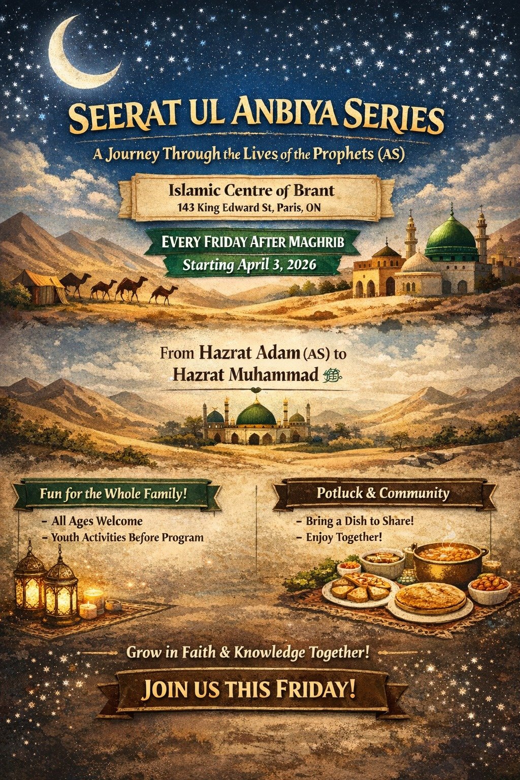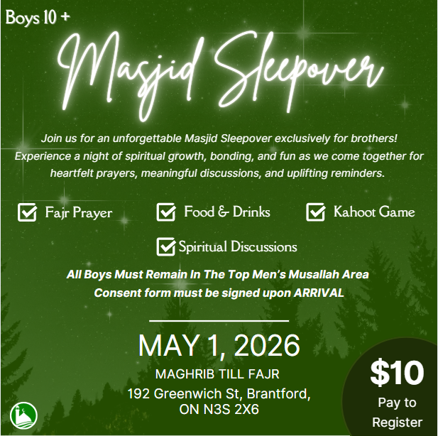 MCNA Weekend Classes – Important Update We hope everyone had a blessed break! Classes will resume on Friday, April 10th at the regular time (6:00 PM – 8:00 PM). Our brantford Mosque Evening Madrasa has also resumed at its regular times (Tues - Thurs 5-6:30 PM) We look forward to welcoming all our students back, insha’Allah. Let’s start strong and continue learning together! For any questions, please reach out.