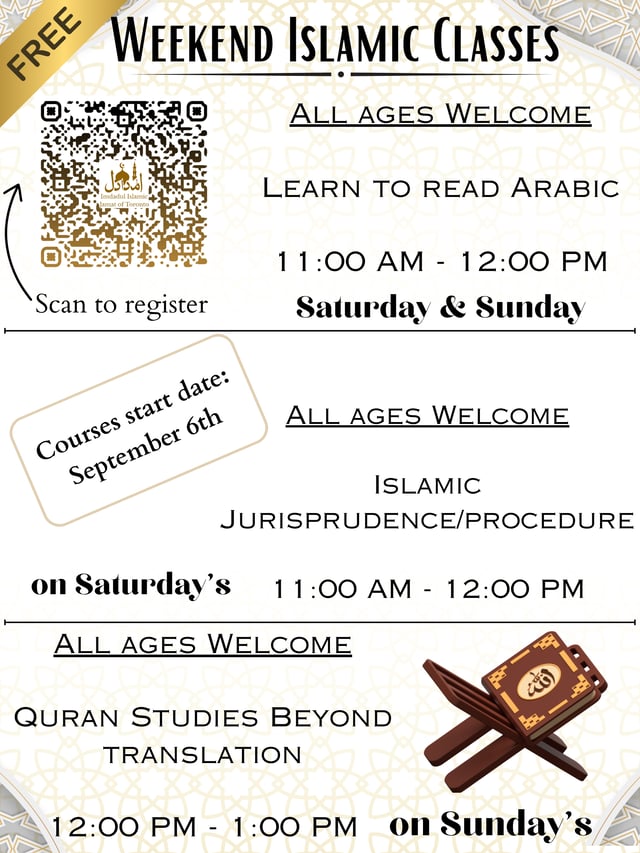 Saturday Nov 1 after Salatul Maghrib to Salatul Isha