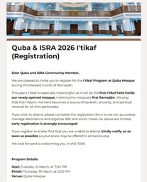 Quba & ISRA 2026 I'tikaf