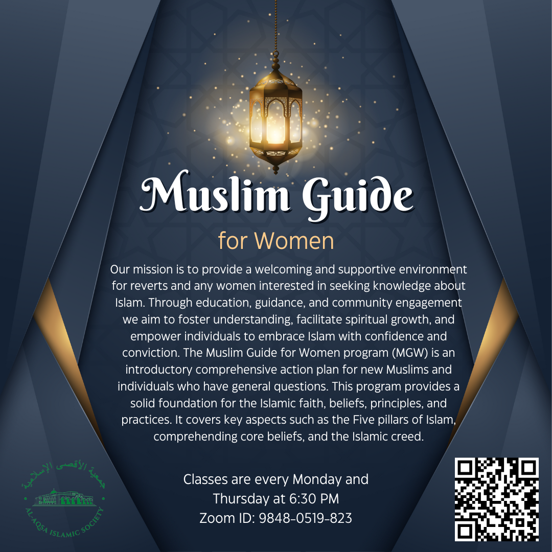 Our mission is to provide a welcoming and supportive environment for reverts and any women interested in seeking knowledge about Islam. Through education, guidance, and community engagement we aim to foster understanding, facilitate spiritual growth, and empower individuals to embrace Islam with confidence and conviction. The Muslim Guide for Women program (MGW) is an introductory comprehensive action plan for new Muslims and individuals who have general questions. This program provides a solid foundation for the Islamic faith, beliefs, principles, and practices. It covers key aspects such as the Five pillars of Islam, comprehending core beliefs, and the Islamic creed.