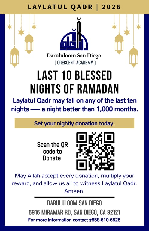 🌙 The Last 10 Nights – A Time to Give, A Time to Multiply Your Reward Laylatul Qadr may fall on any of the last ten nights — a night better than 1,000 months. Don’t risk missing it. Set up a daily automatic donation so you give every night and secure the reward of Laylatul Qadr, inshaAllah. Even a small daily amount can bring an enormous reward. Set your nightly donation today. May Allah accept every donation, multiply your reward, and allow us all to witness Laylatul Qadr. Ameen. 🔗 Donate now and be part of the reward. IMPORTANT: If you are on a daily payment plan, your subscription will automatically end on the last night of Ramadan.