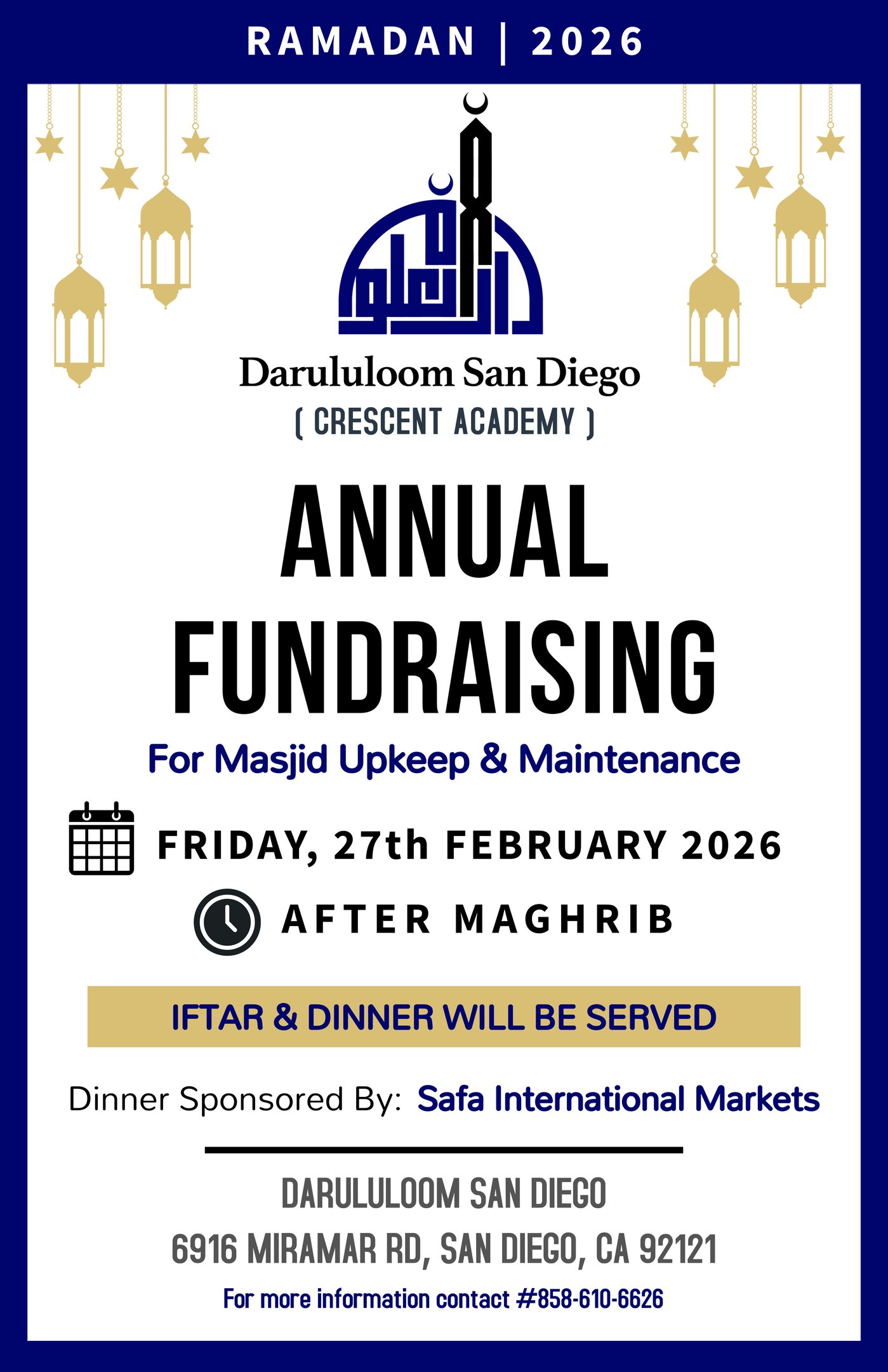 Masjid Annual Expense Fundraising: $24,000/Month is required to operate the Masjid. For Donation & Info, Scan the QR Code.