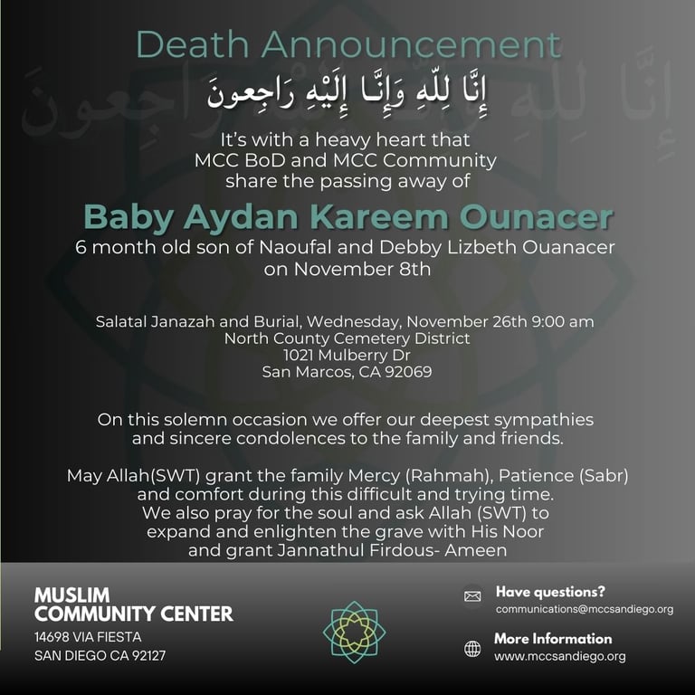 May Allah(SWT) grant the family Mercy (Rahmah), Patience (Sabr) and comfort during this difficult and trying time.