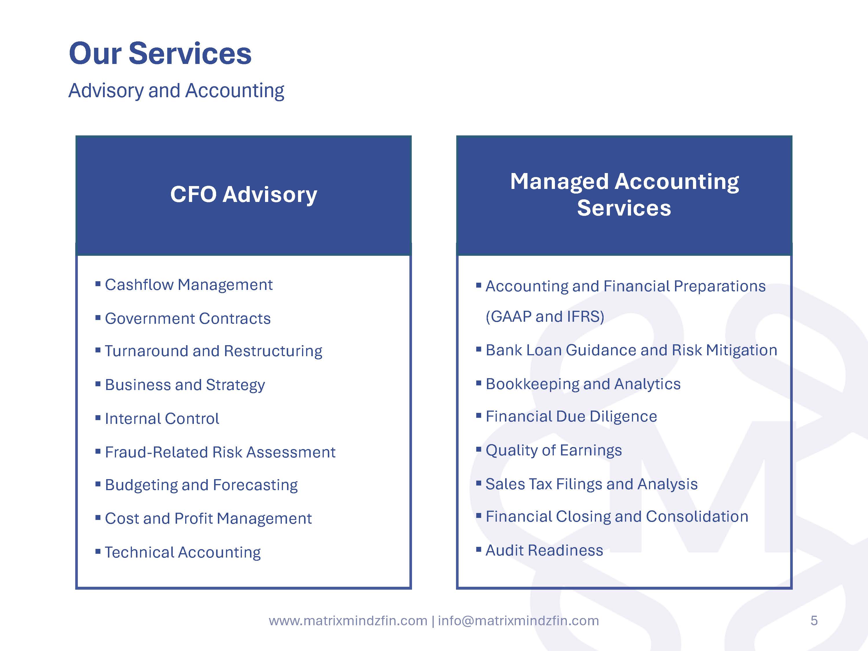 MatrixMindz is a financial advisory firm specializing in Accounting Services and CFO advisory services . We are a one stop shop for small to mid size market businesses to help them in Strengthen their financial footing, Navigate complex financial landscapes . our expert team is competent to provide Accounting services in various industries like Real estate, Health care, Finance industry, Retail, Technology, etc.