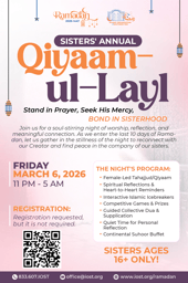To better accommodate the community for the rest of the month, Isha Prayer will now be at 8:45 PM for the remainder of Ramadan. ---