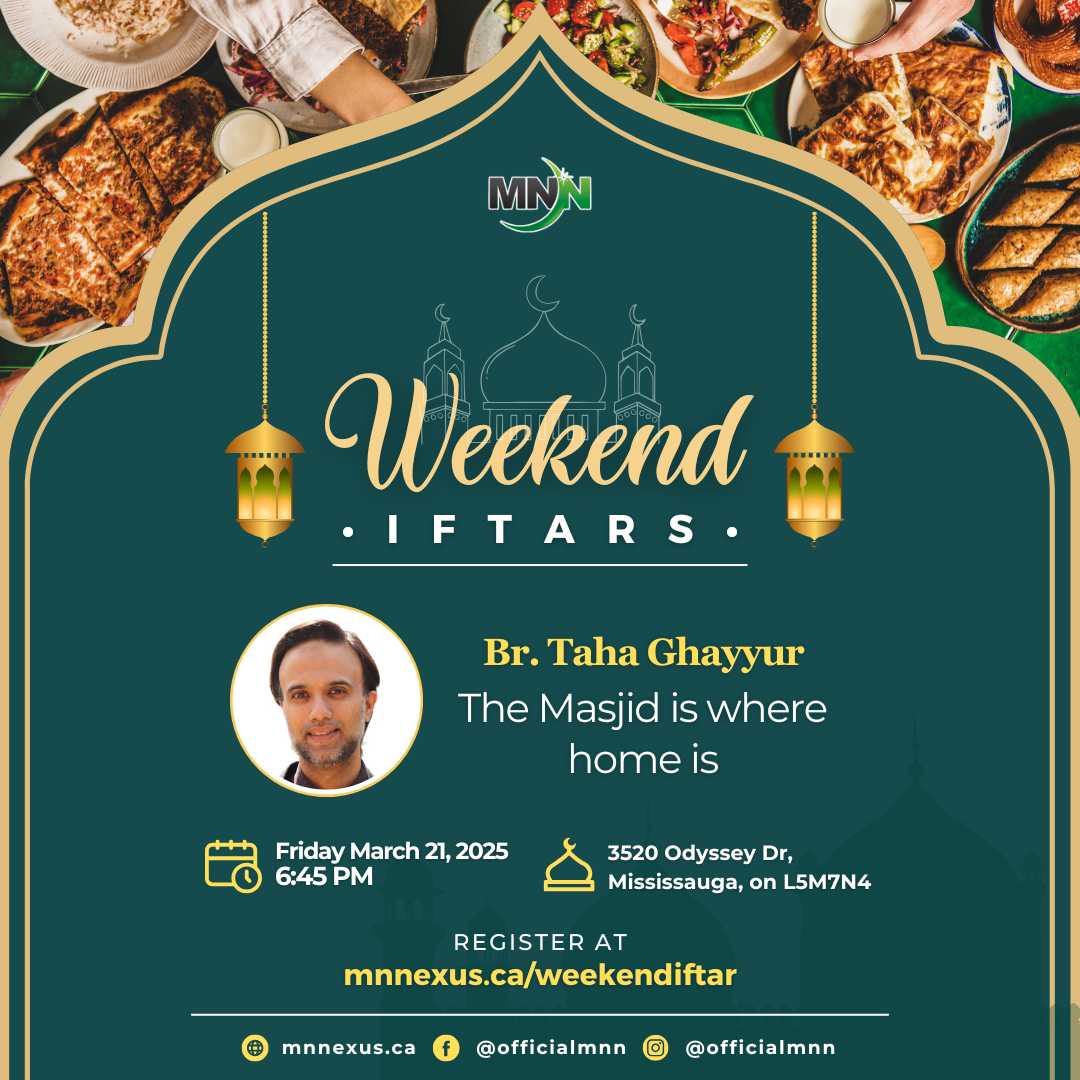 Join us for iftar this coming FRIDAY with Br. Taha Ghayyur