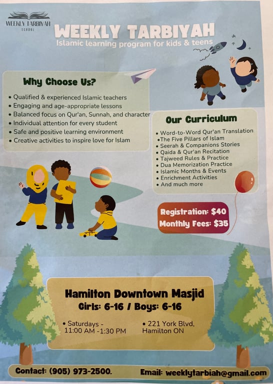 We kindly wish to inform you that the Iqamah timings at the Hamilton Downtown Mosque will change beginning Friday, April 24th, 2026. The updated times are: