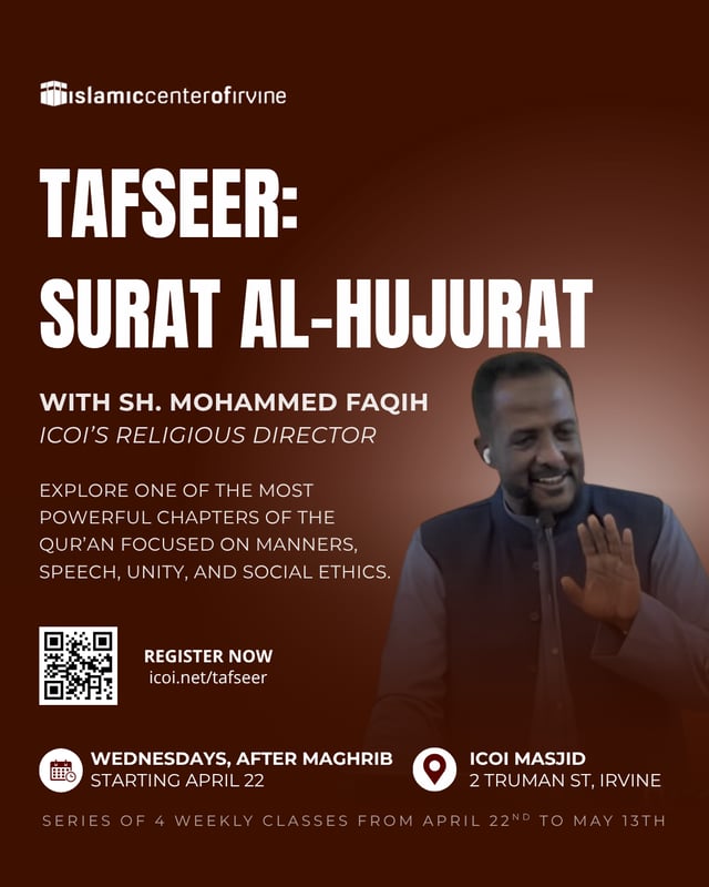 📍 Location: Islamic Center of Irvine – 2 Truman St, Irvine, CA 92620