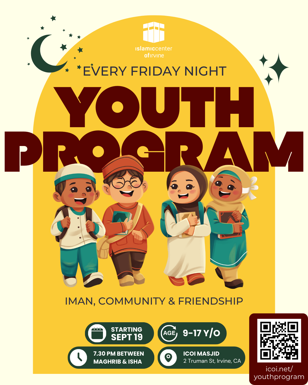 Join us for an inspiring evening of Iman, community, and friendship at ICOI! This is a great opportunity for our youth to connect, learn, and grow together in a safe and fun environment.
