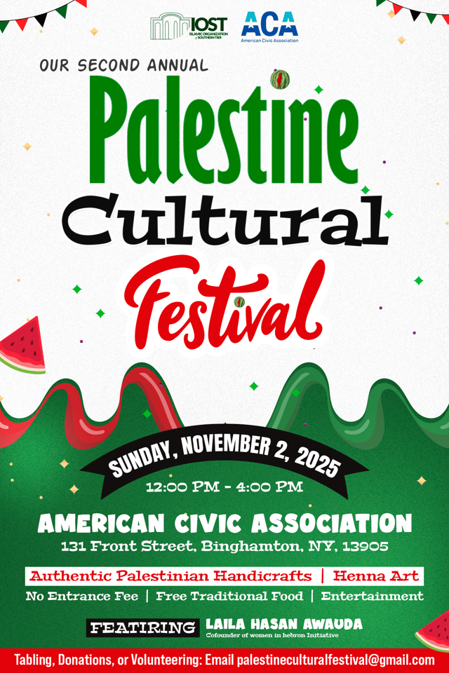 π΅πΈβ¨ Palestine Cultural Festival β¨π΅πΈ Hosted in Partnership with IOST & the American Civic Association