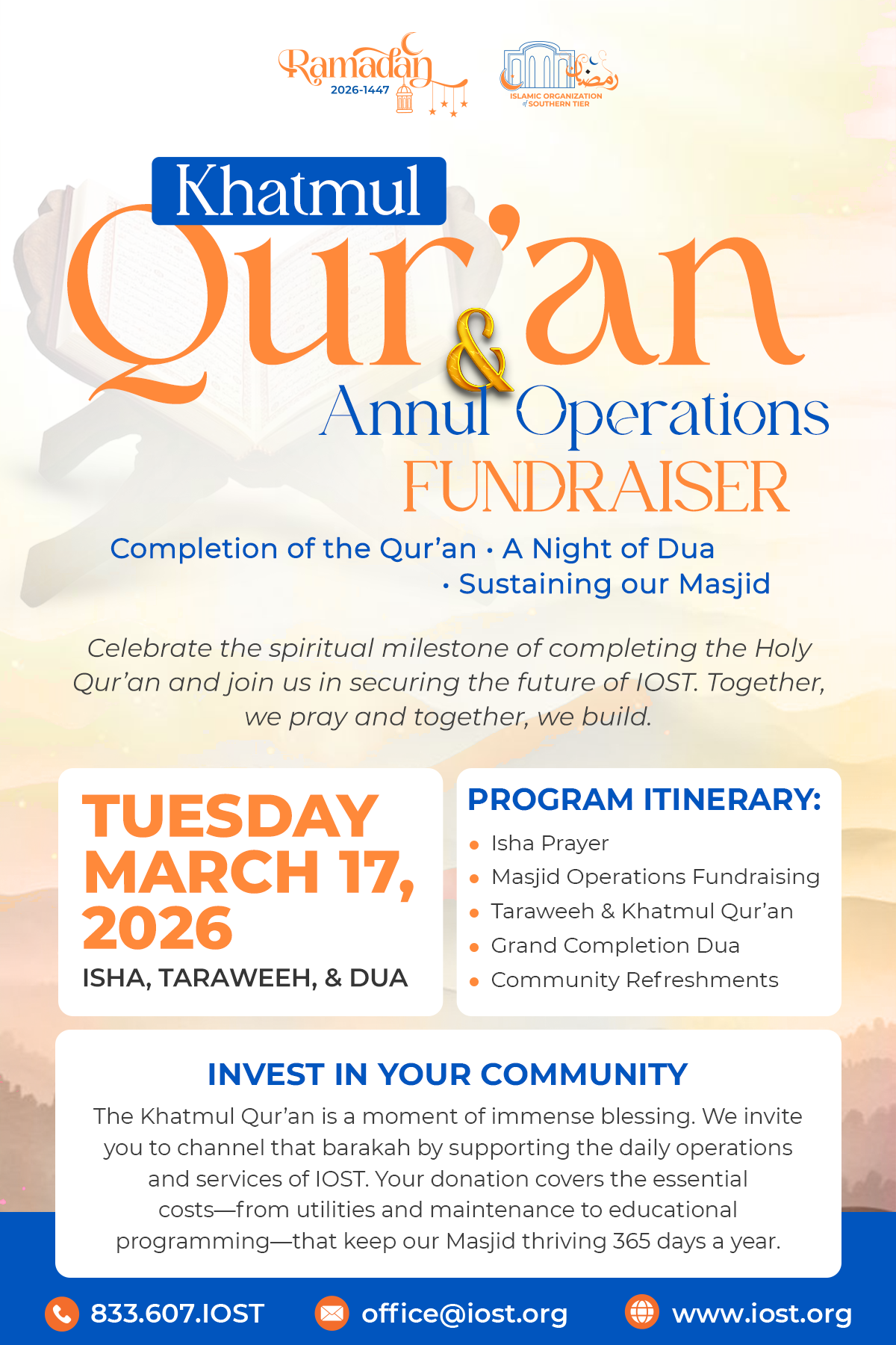 - Support Your Masjid: Contribute toward the essential operational needs of IOST, including utilities, maintenance, and community programming.
