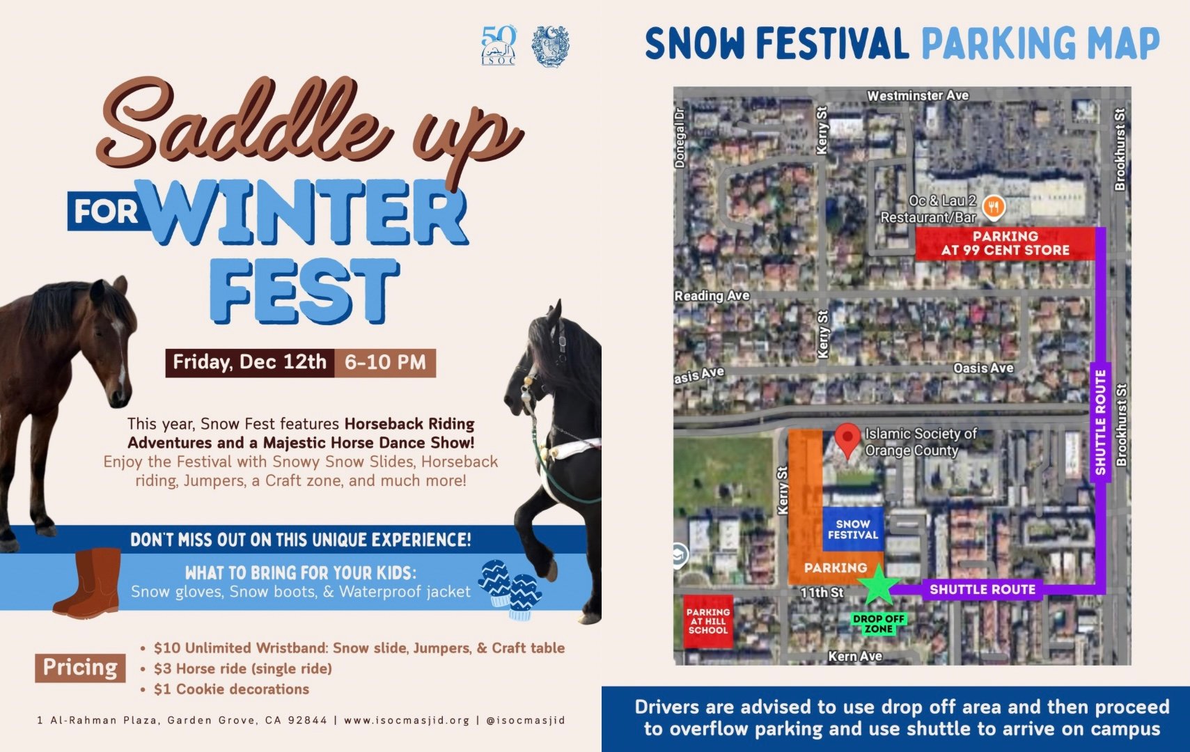 Additional parking available at 99 cent store. Drop off zone will be on 11th street.
