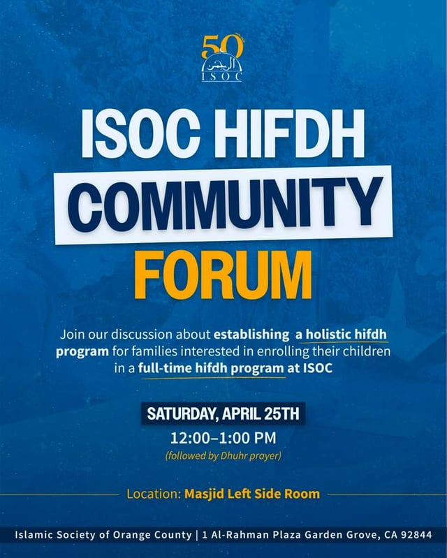 Saturday, Apr 25 - 12 - 1pm followed by Dhuhr Prayer
