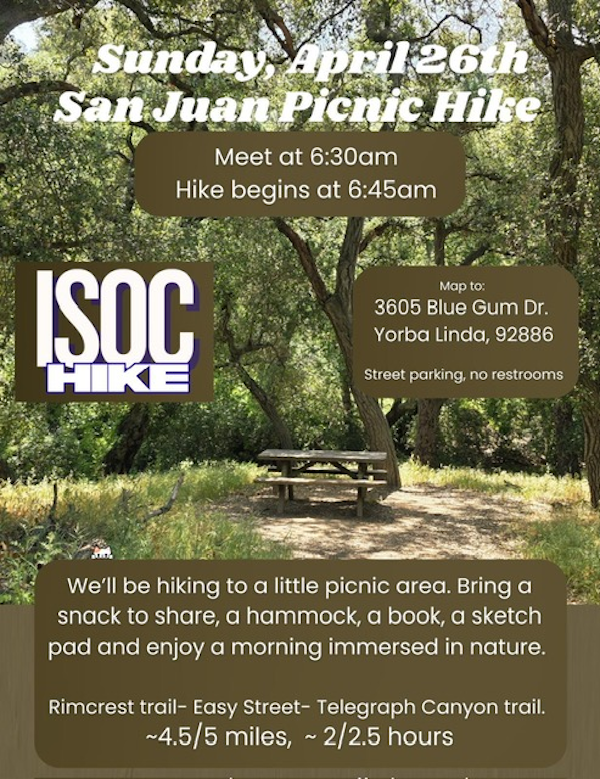 Sunday, April 26th | Meet at: 6:30am | Hike begins at: 6:45am