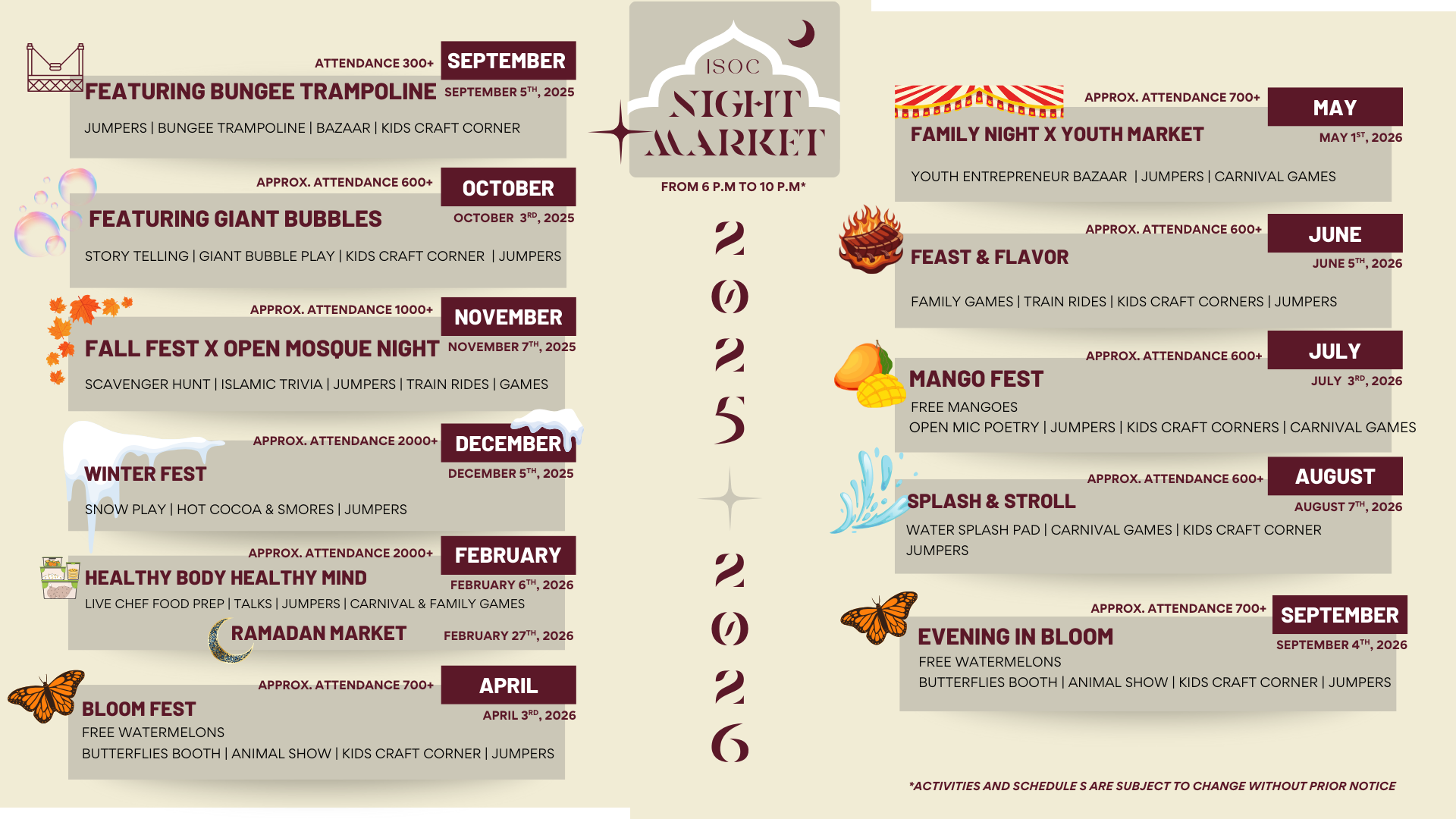 Ready to spread good vibes, support local vendors, and be part of something awesome? Come volunteer at the ISOC Night Market. Bring the kids, bring the crew, thereβs always something for you!