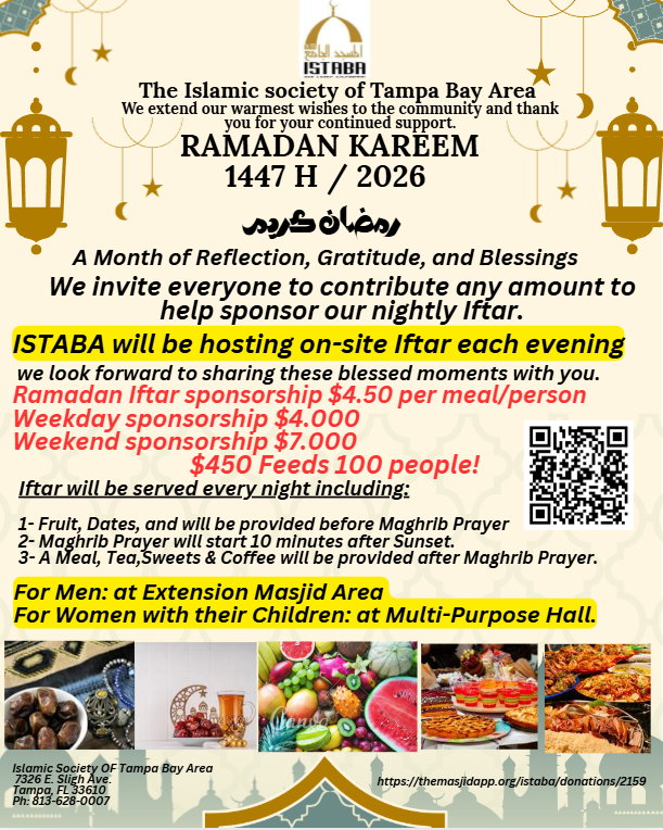 Contributions go towards feeding and serving those who fast and worship at The Islamic Society of Tampa Bay Area.