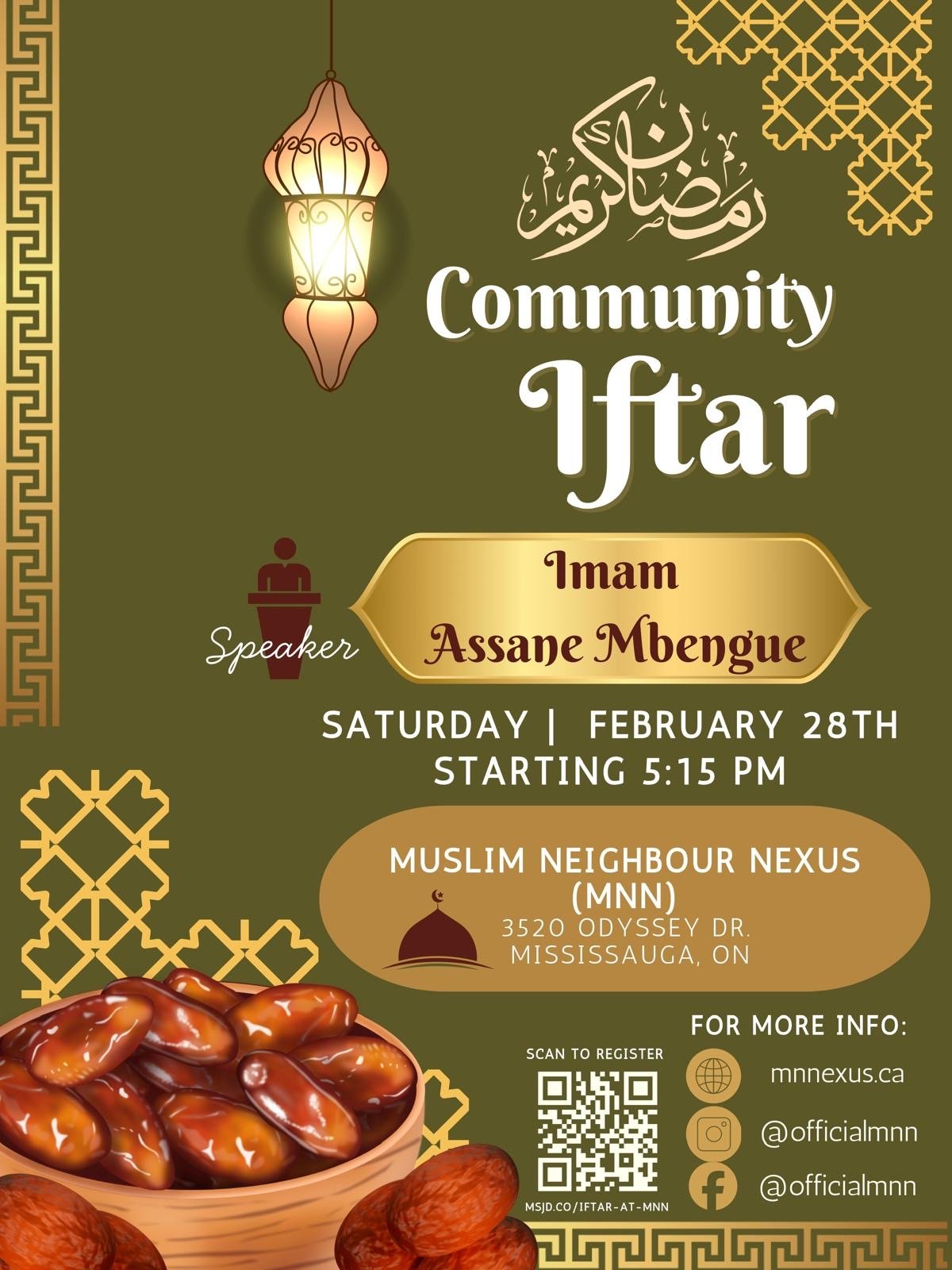 MNN will be hosting a Community Iftar on February 28th, InshaAllah.